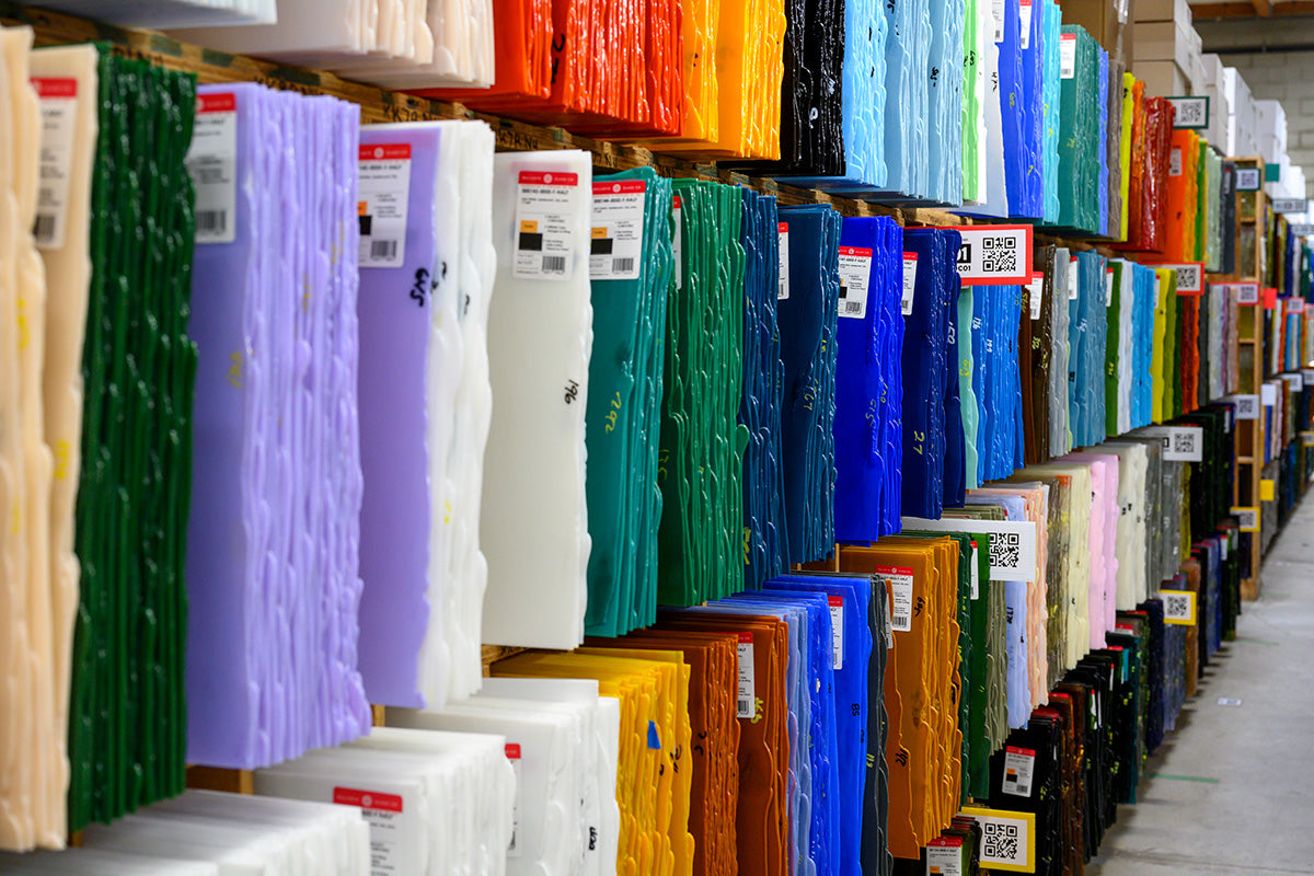 We offer a huge variety of color, size, and style options. No matter what sort of project you're undertaking—kilnforming, stained glass, mosaic, or anything else—the art glass sheets you want are right here. Bullseye Glass is handcrafted in Portland, Oregon, USA.